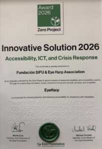 On 26.06.2017 the EyeHarp received an award of the Fundacion Caser in the category Dependencia y Sociedad. Those awards are granted to projects that help to integrate and improve the quality of life of people with disability.
